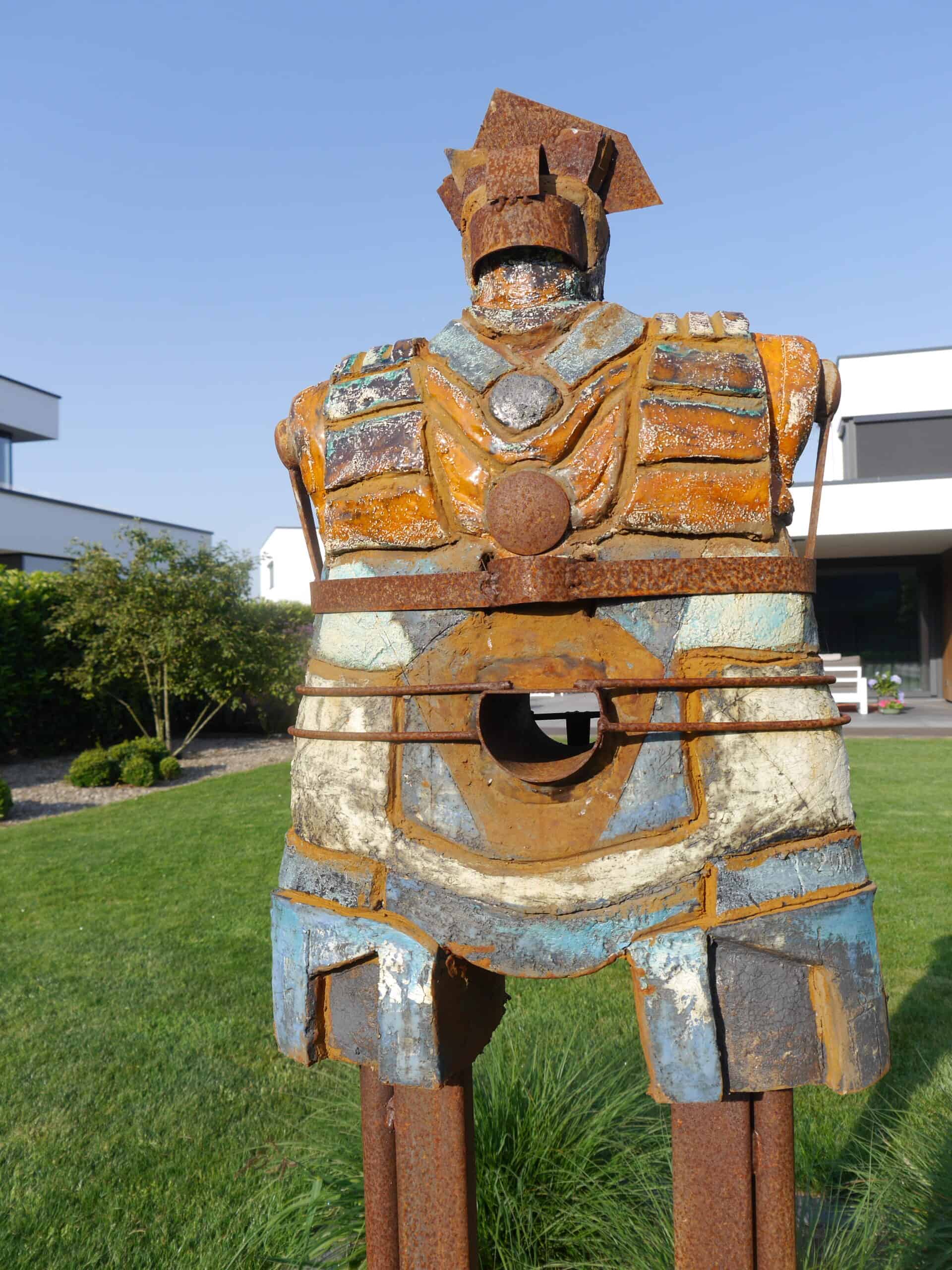 Een lange smalle vijver zorgt voor een stijlvolle verbinding, dieptewerking, sfeer en contrast in materialen. Waterplanten zorgen straks voor extra beleving tijdens de seizoenen. Het prachtige, robuuste levensgrote beeld zorgt voor de persoonlijke finishing touch aan de tuin.